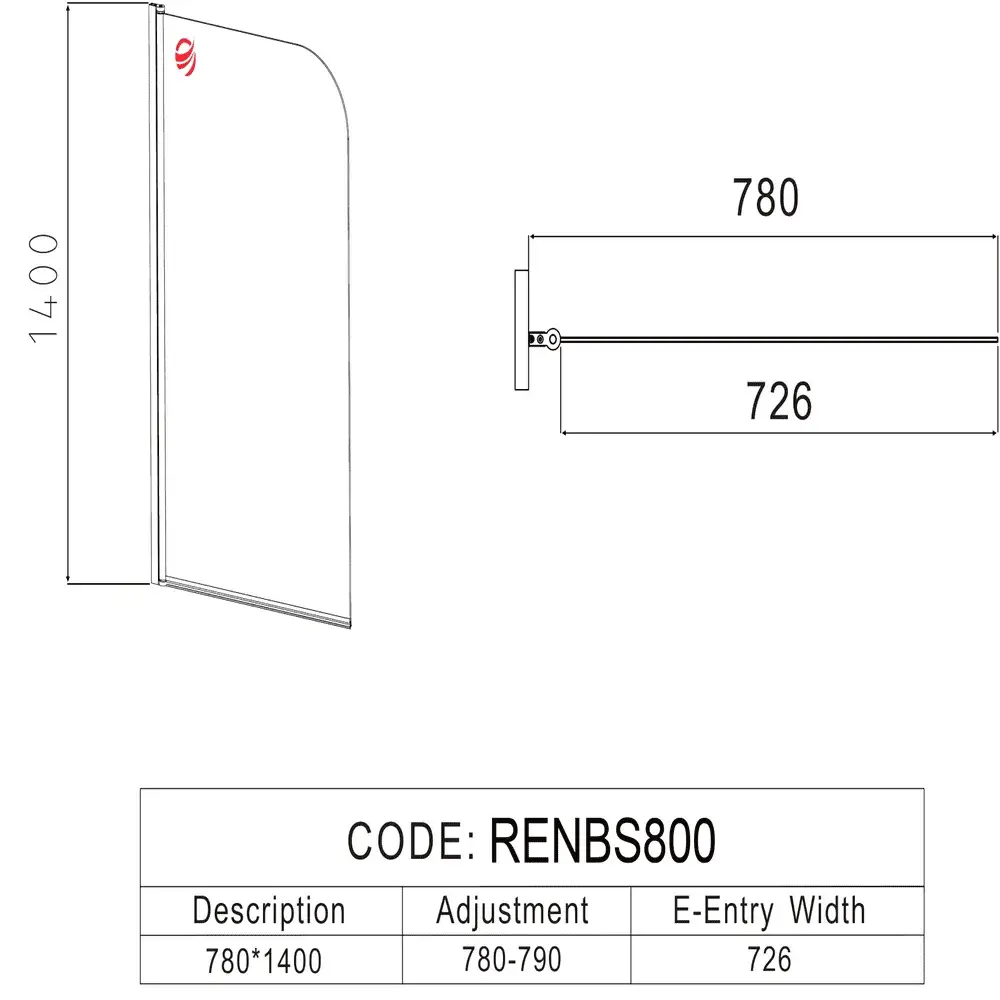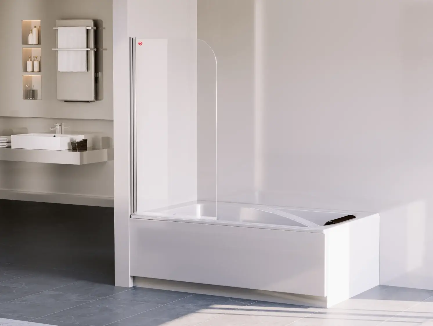 Description: Chrome Bath Screen 1400 X 780mm / Soft Pivot System